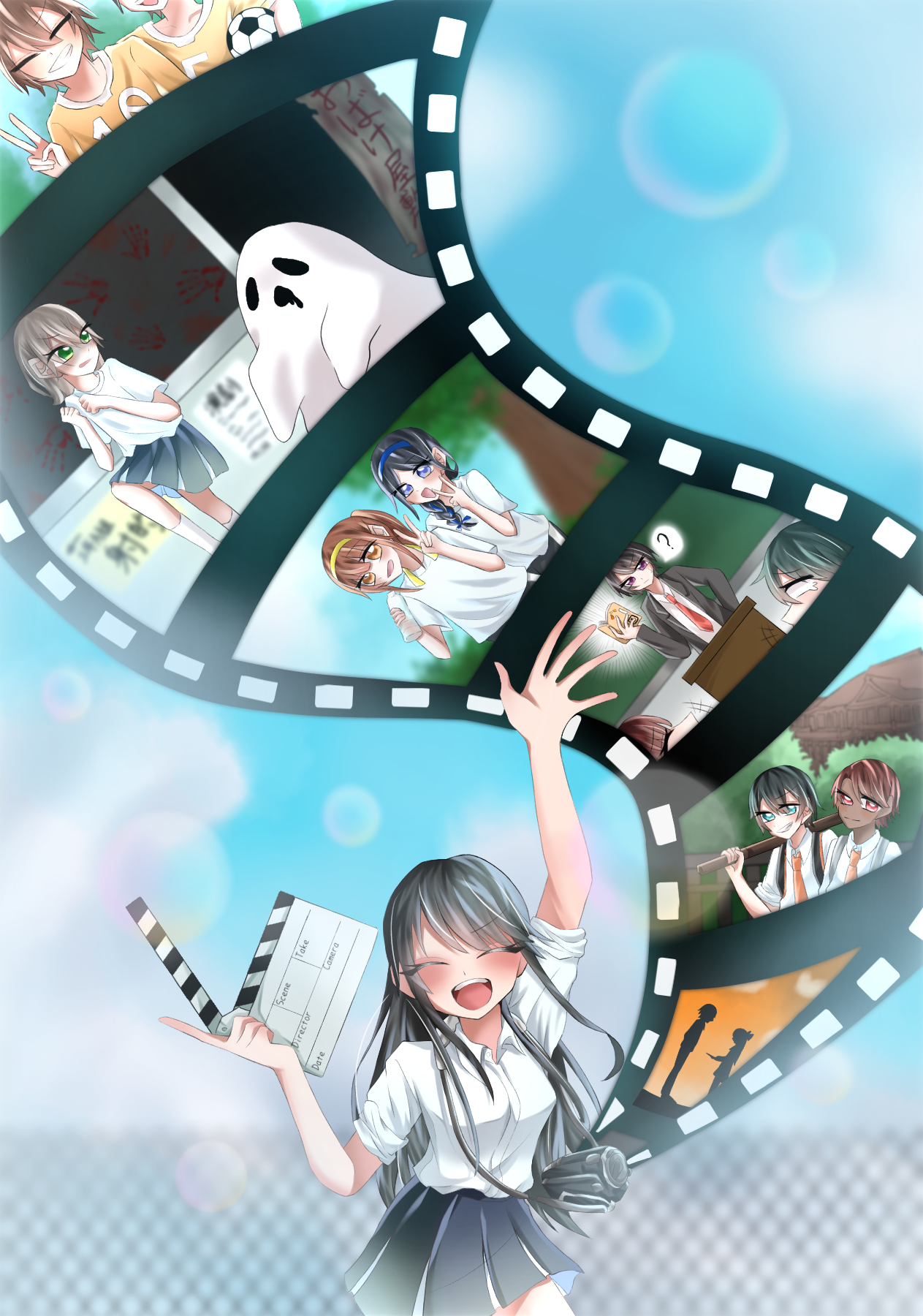 テーマの学生生活から、第一学院の自由な校風の中で、個性を大切にしながら、みんなが未来に向かっていく姿をイメージして描きました。