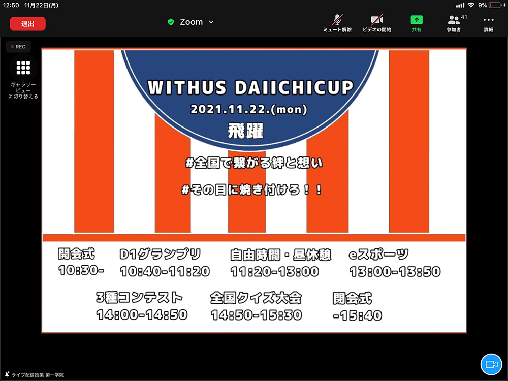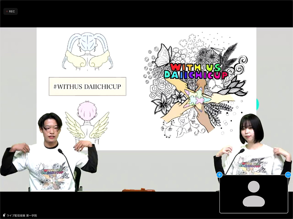 全国のキャンパスの仲間がオンラインでつながるWITHUS DAIICHICUP<オンライン文化祭>。自分の感性を表現したり、仲間とコミュニケーションをとりながら絆を深め、かけがえのない思い出を作っていきましょう。2021年度はイラスト・フォトコンテスト、川柳コンテスト、e-スポーツ、D-1グランプリ、クイズ選手権の5つの種目を実施しました! 事前に募集したTシャツコンテストと応援旗もページ下部でご紹介しています!
