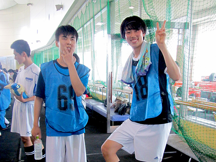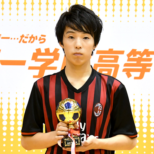去年は決勝戦まで進めず、悔しくて、今回挽回しなきゃと思って1年間やってきました。決勝戦は相手チームの当たりが強くて、正直苦戦しましたが、2点目取った後すぐに3点目が取れて、良いリズムで進められてよかったです。練習回数はどうしても多くは取れないので、1回1回集中してゲームの感覚を掴めるように毎回激しく当たって、本番に向けて整えてきました。中学校の頃からサッカーをやっていたのですが、第一学院に転校してきてフットサルを始めました。学校になじめたのもフットサルのおかげですし、試合でも僕は攻撃が得意なので守備をカバーしてくれたりして、チームの皆には、ほんとうに感謝しかないです。