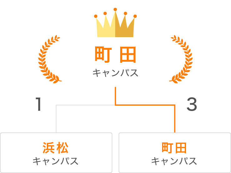 順位 キャンパス 1戦目 2戦目 1 埼玉 2-2 2-0 2 宇都宮 2-2 0-2 ※2戦先取