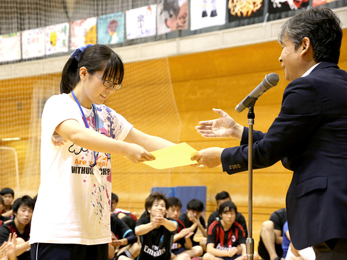 大会で最も輝いていた選手はもちろんのこと、ボランティア生徒が着用するTシャツのデザインや校舎一体となって作成した応援旗など、選手だけではなく、様々な形で大会に貢献してくれた生徒の作品を紹介します。