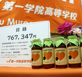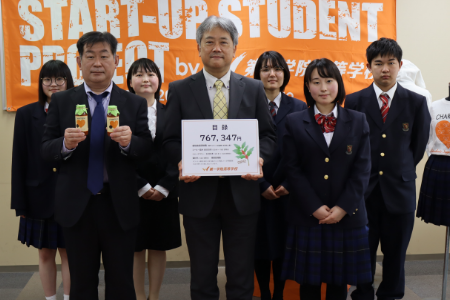 寄付金額767,347円生徒が地域の方と一緒に商品をプロデュースし、ウェブサイトを活用した販売までを実践。今回、その売上を特定非営利活動法人AMDA社会開発機構に寄付することに決定し、2022年3月22日に目録贈呈式を行いました。